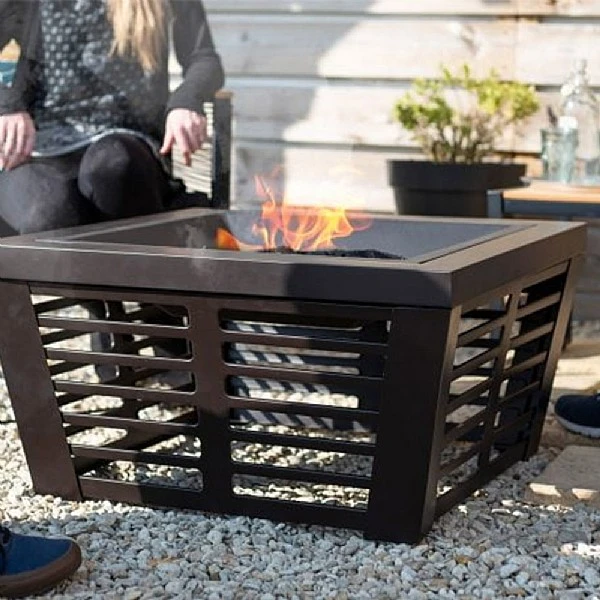 - This firepit is complete with an optional mesh lid which can be placed on top to prevent the spread of sparks and ash.