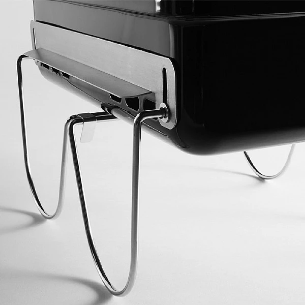 - Fold away stand raises barbecue and prevents burning surfaces